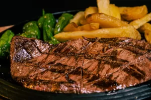 A Carne Asada com Molho de Chiles e Cebola Caramelizada é uma explosão de sabores e texturas. A carne bovina, grelhada à perfeição, apresenta uma