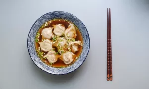Os wantans chineses ao molho de soja e gengibre são uma explosão de sabores e texturas. A massa fina e delicada dos wantans envolve um
